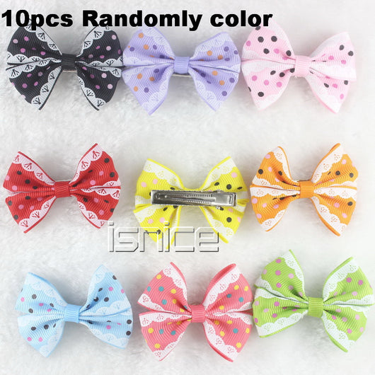 5pair/10Pcs 2 Inch Ribbon Hairbow Girls hair top hair clip For Girl Dot/Print Bow Hairpin Baby Children accessories gum for hair