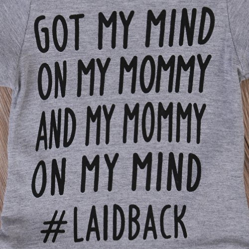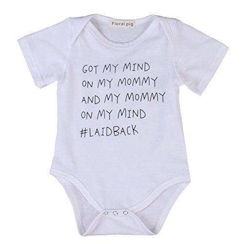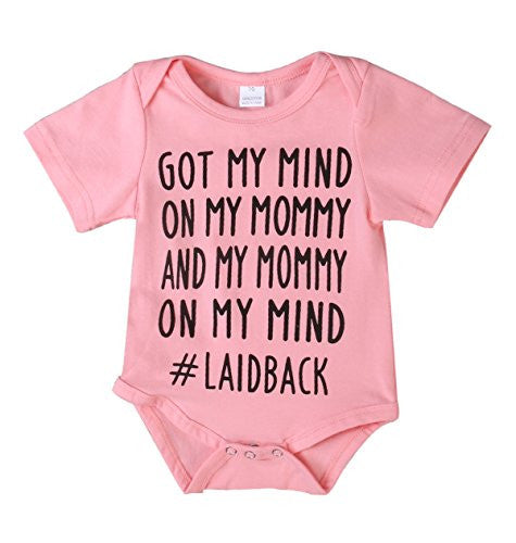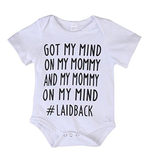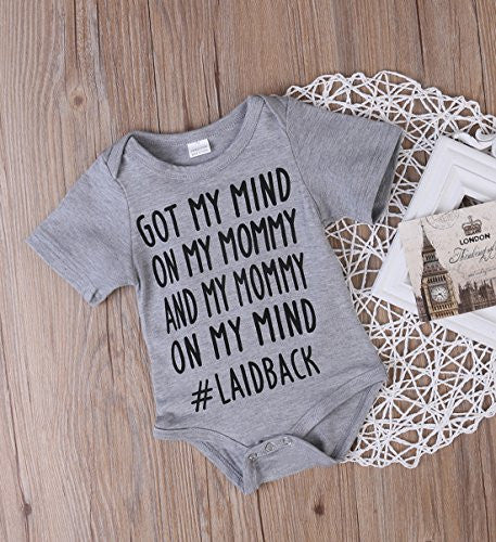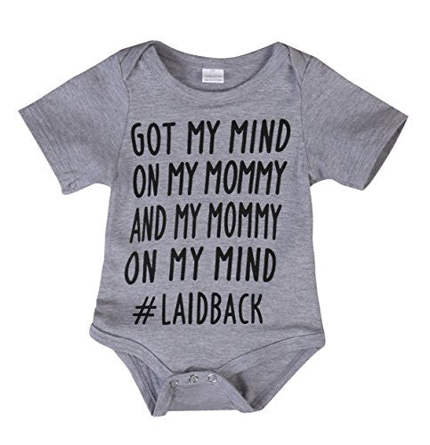 Newborn Baby GOT MY MIND ON MY MOMMY Funny Bodysuits Rompers Outfits Blue