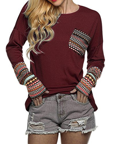POGTMM Women Long Sleeve/Short Sleeve O-Neck Patchwork Casual Loose T-shirt Blouse Tops - Free + Shipping