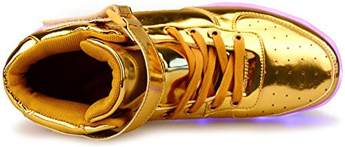 Poppin Kicks Unisex Adults LED Light Up Shoes Men Women Metallic Leather High Top Sneakers