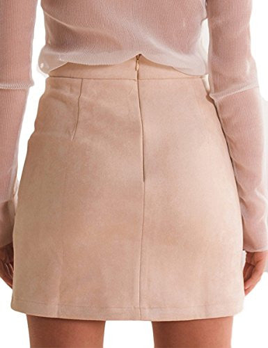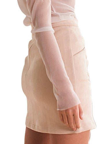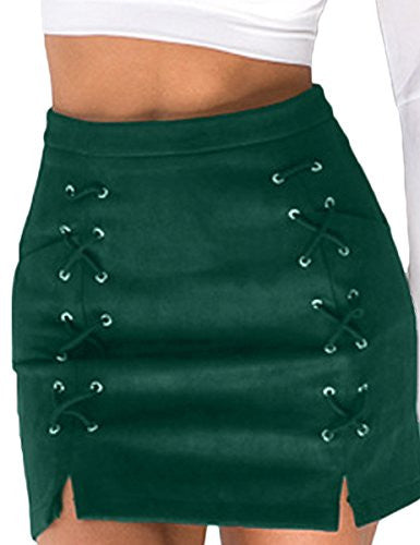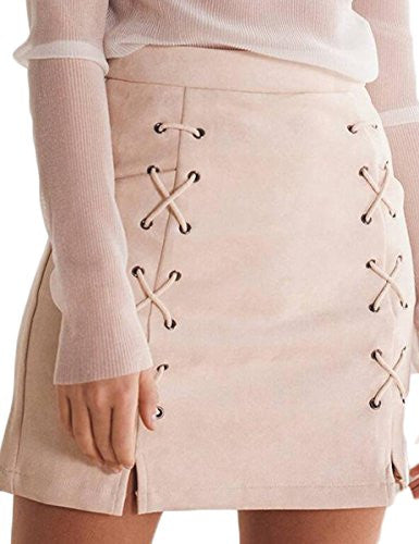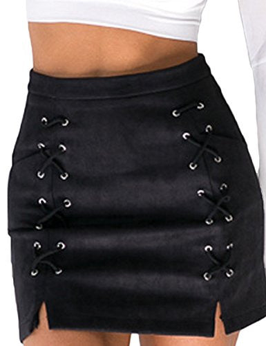 Prograce Women Sexy Criss Cross Tight Bodycon Faux Suede Stretch Mini Skirt