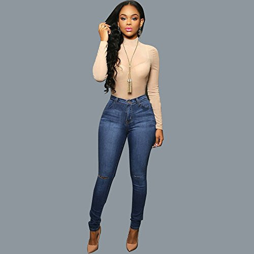 Sexy Women Elastic Butt Lift High waisted Casual Denim Ripped Holes Skinny Jeans - Free + Shipping
