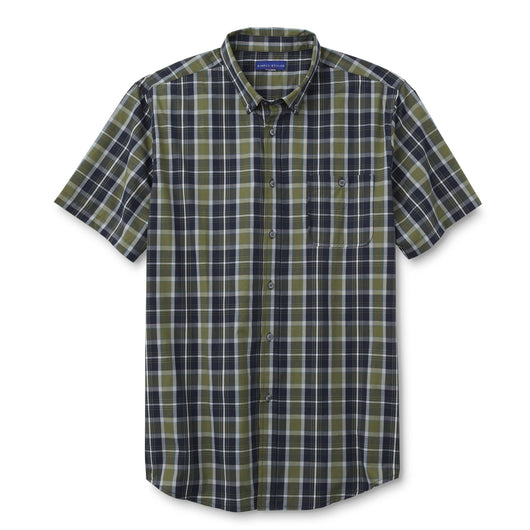 Improve your casual look with this men's big and tall plaid short-sleeve sport shirt by Simply Styled. The straight cut allows room through the arms and chest to present a classic look with the polish of a button-down collar. Easy care cotton-blend fabric resists wrinkles for a comfortable and effortless design.