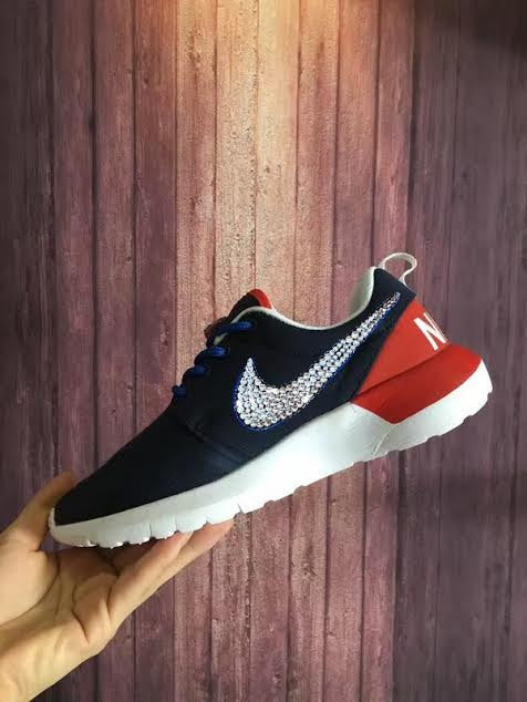 Swoosh Swarovski Crystals Nike Roshe Run Two Women White Glitter Bling Nike Running Fashion Sneaker Shoes Christmas gifts for girl