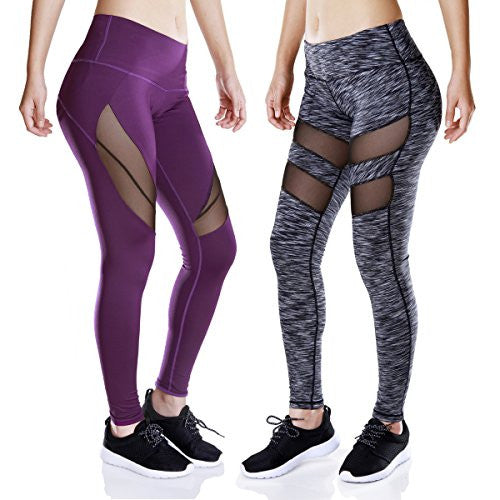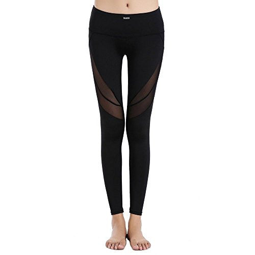 TALACCA Womens Active Mesh Yoga Capri Leggings w Pocket - High Waist Tight Workout Pants - Free + Shipping