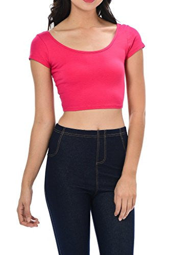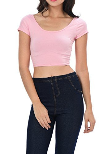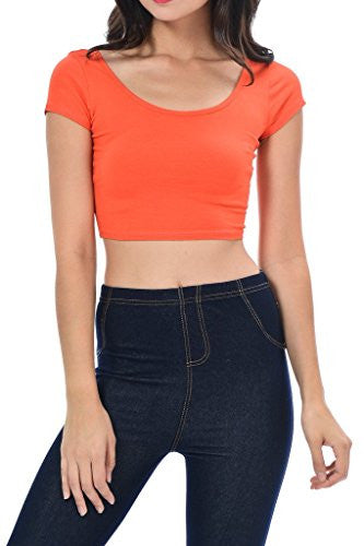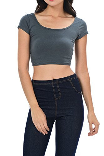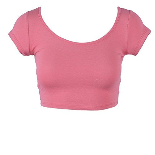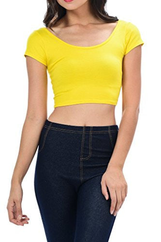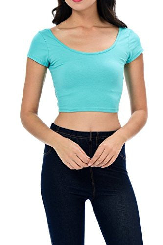 Womens Trendy Solid Color Basic Scooped Neck and Back Crop Top