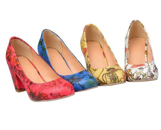 New Fashion Freeshipping Casual Round toe women shoes middle thick heel with Print Flower Sexy Shoes Fashion Cool RL775 - Free + Shipping