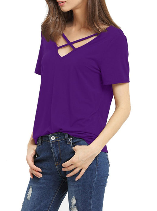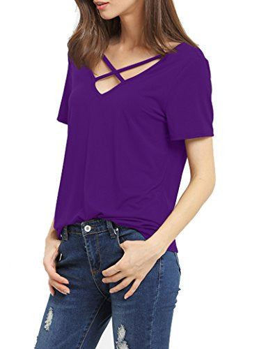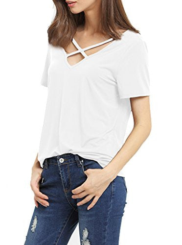 Romastory Women's Summer Tops Bandage V-Neck Casual Girls Tees T Shirt