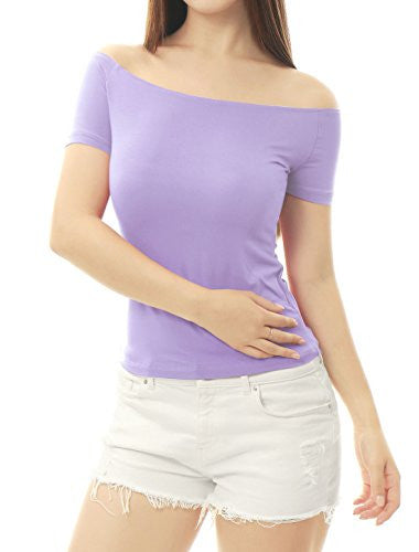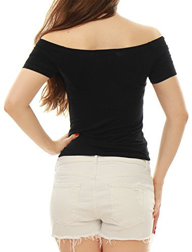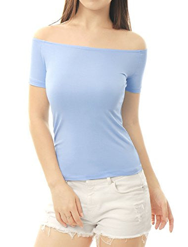 Allegra K Women Short Sleeves Slim Fit Off the Shoulder Top