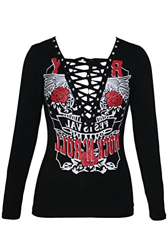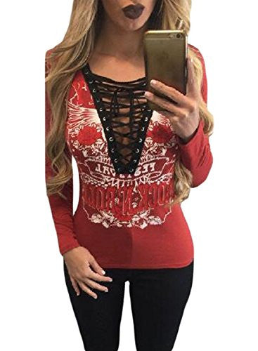 Astylish Women Sexy Casual Printed V-neck Long sleeve Bandage T-shirt Tops Tees