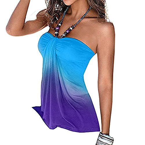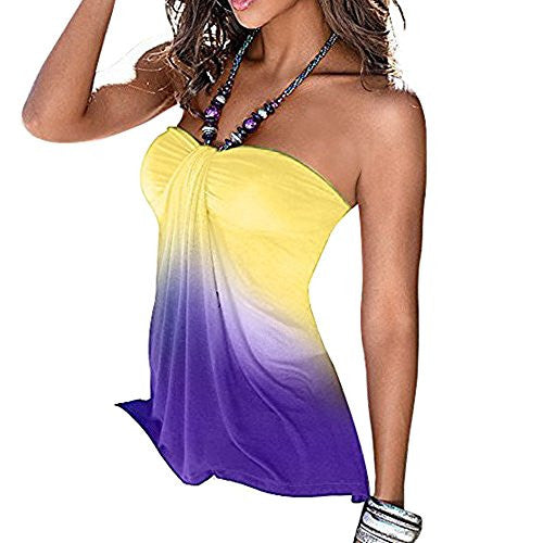 Baifern Women's Halter Off-shoulder Backless Gradient Blouses