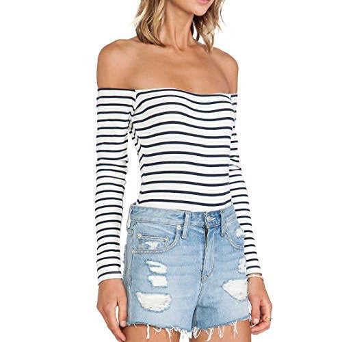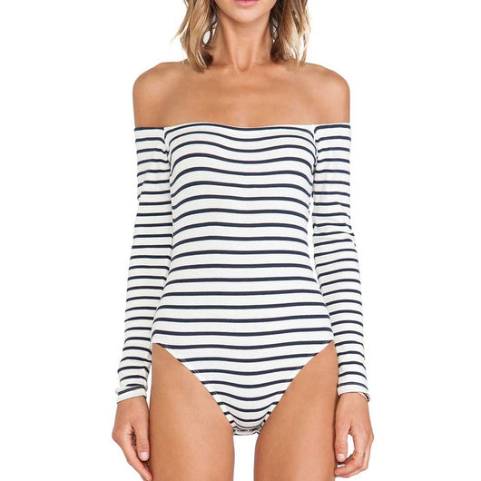 Cheapcotton Women's Black Stripe Shoulderless Leotard