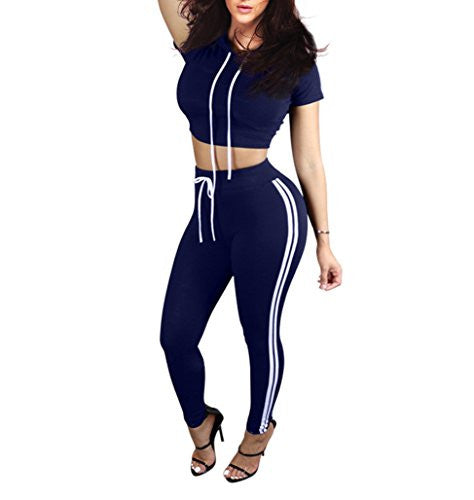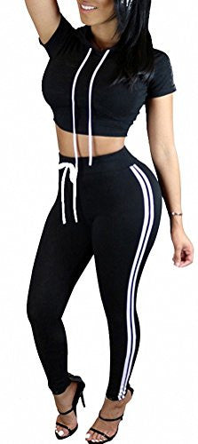 ChongErfei Women's Sexy Bodycon Round Neck Hoody Pants 2-Piece Jumpsuit Sportswear