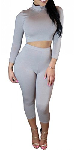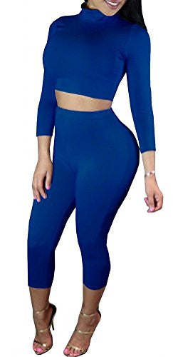 Dasbayla Women's Sexy Long Sleeve Tank Top and Crop Leggings 2 Sets Tracksuit