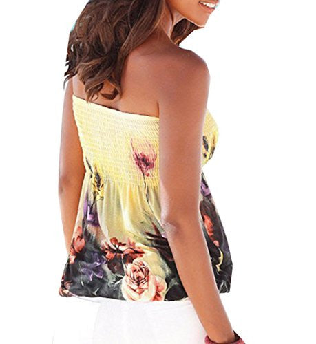 Fairviewer Women's Floral Print Strapless Pleated Tube Top Shirt