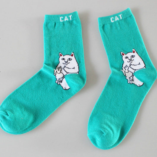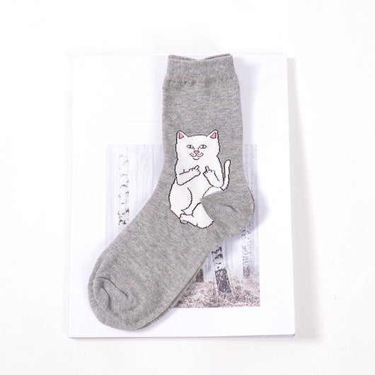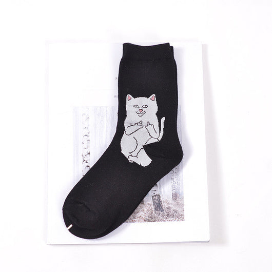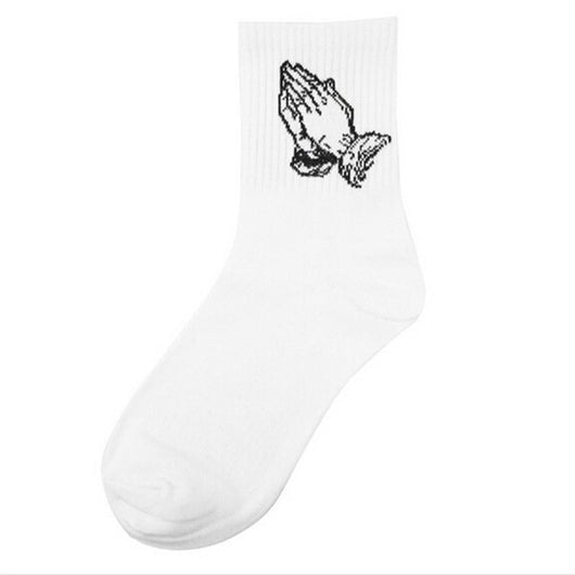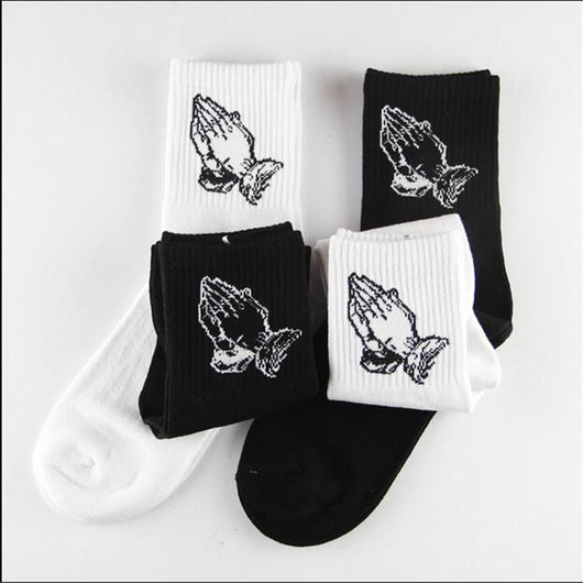 Fashion skate cotton crew socks of Virgin Mary gesture pattern for men women tide brand hip hop funny novelty  white black Funky