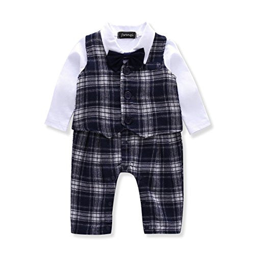Ferenyi US Baby Boys Bowtie Gentleman Romper Jumpsuit Overalls Rompers