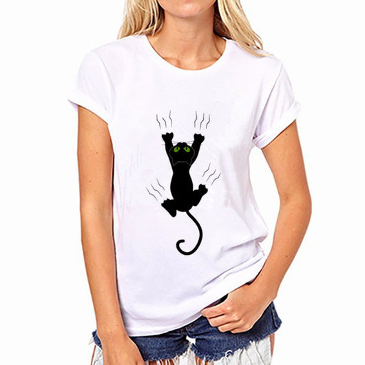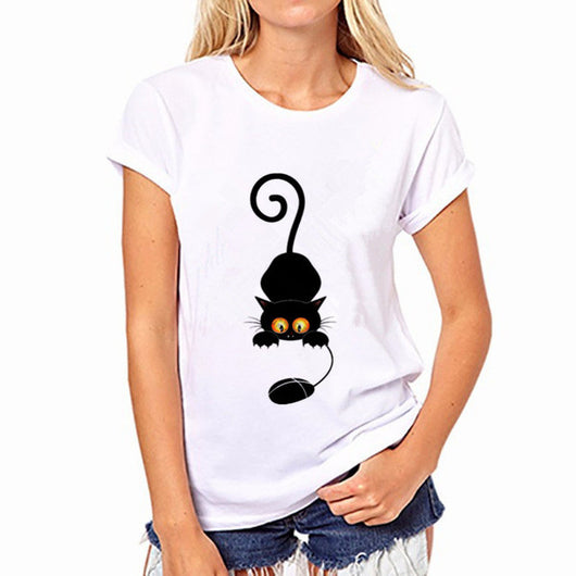 Harajuku Cat T Shirt Women 2016 Blusa Summer Fashion Cotton Printing Originality O-Neck Short Sleeve T-shirt Tops Shirt