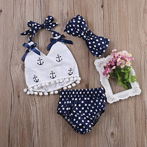 Infant Baby Girls Clothes Anchor Tops+Polka Dot Briefs Outfits Set Sunsuit 0-24M