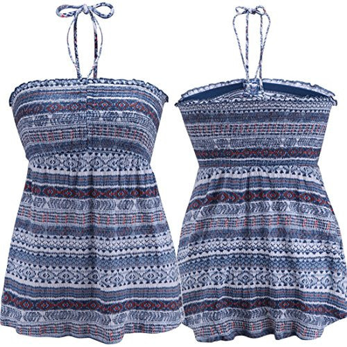 Kmool Women's Sexy Summer Cotton Blend Printing Lace-up Halterneck Tops - Free + Shipping