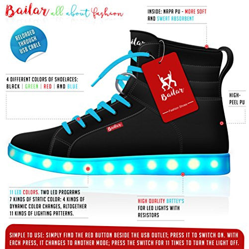 Light Up Shoes For Kids, Girls Boys Women & Men with 11 Led Lighting Patterns & 4 Pairs Of Colorful Laces