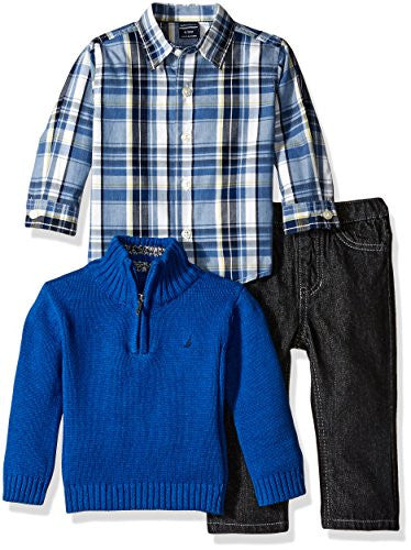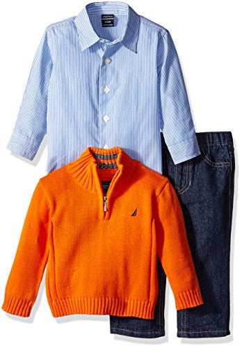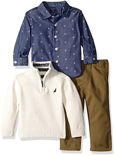Nautica Baby Boys' Three Piece Set with Button Down Shirt, Sweater, and Pants