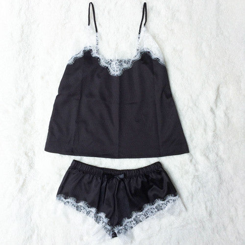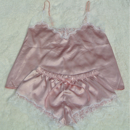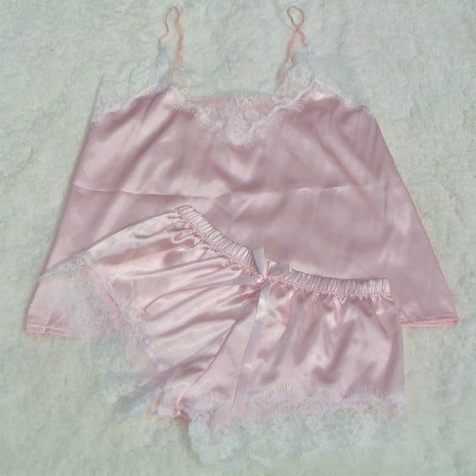 Satin Cami and Shorts Set Lace Nightgowns Comfy Pajamas Pretty Nighties Artificial Silk Sleepwear Sets
