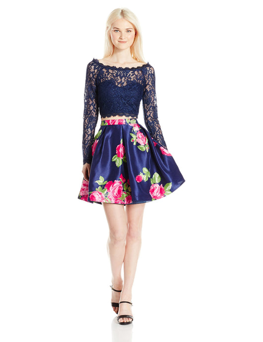 Sequin Hearts by My Michelle Junior's Two Piece Short Prom Dress with Long Sleeve Lace Top