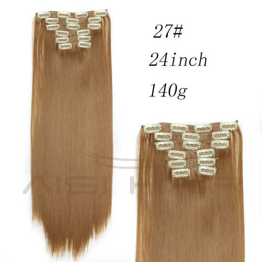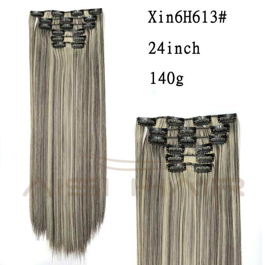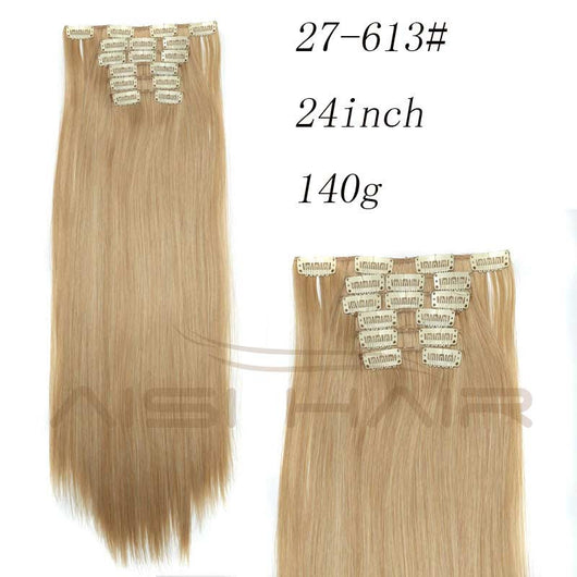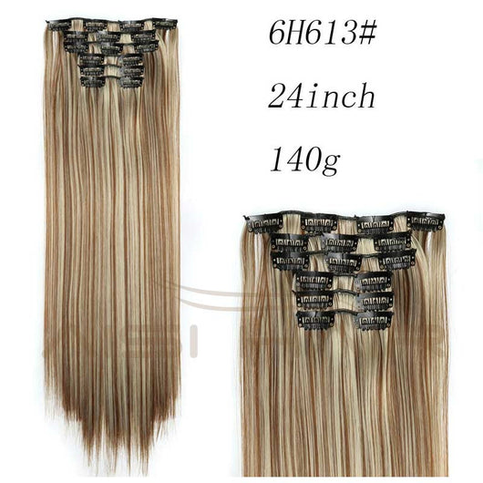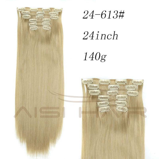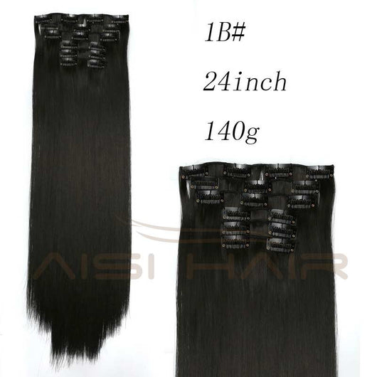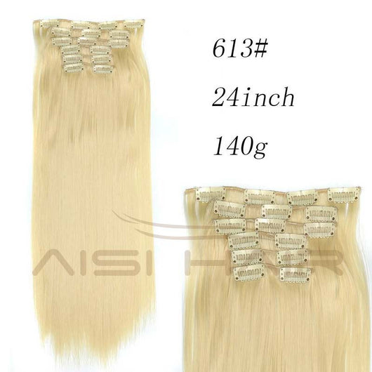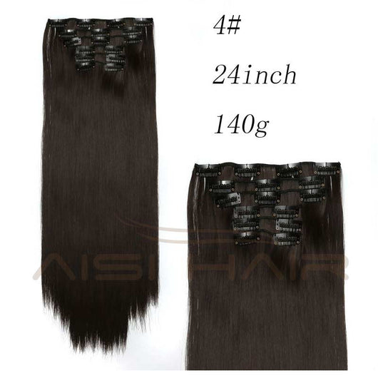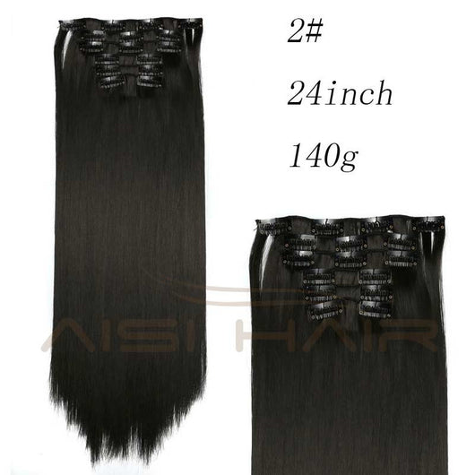 Synthetic Hair with Clips 16 Clip in Hair Extensions False Hair Hairpieces Synthetic 23" Long Straight Apply Hairpiece